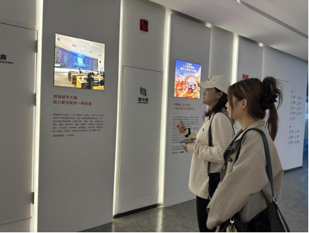 在企业工作人员的引导下,师生参观了阿里中心业务展示区,系统了解阿里在视频业务、数字内容生态、数字政府、智慧城市等方向的创新布局。同学们对互联网平台的内容生产逻辑、技术支撑体系以及行业生态有了更直观的认识。