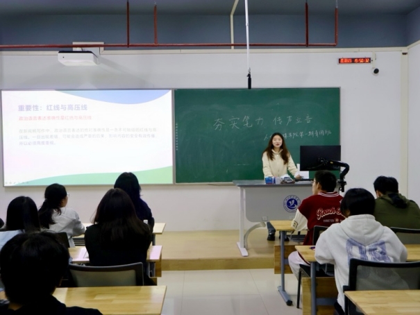 讲座中,付思源同学结合具体案例,系统讲解了新闻写作的基本规范。她指出,一篇规范的新闻稿应当做到标题准确鲜明、主副标题协调呼应;导语部分需清晰概括事件核心信息;主体内容则应层次分明、逻辑清楚。她还特别强调,涉及政治内容的表述必须反复核对、确保精准,这是新闻写作中不可忽视的重要原则。