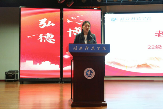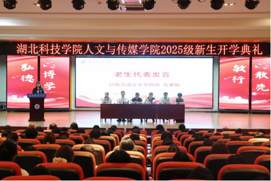 老生代表2022级汉语言文学专业吴蔓脉同学以“过来人”的视角,分享了自己在湖科文传的成长故事:从课堂上的知识求索到实践中的能力突破,从校园活动的积极参与到个人目标的逐步实现。她寄语学弟学妹,要珍惜大学时光,主动跳出“舒适区”,在探索中找准方向,在尝试中收获成长,让青春在奋斗中绽放光彩。