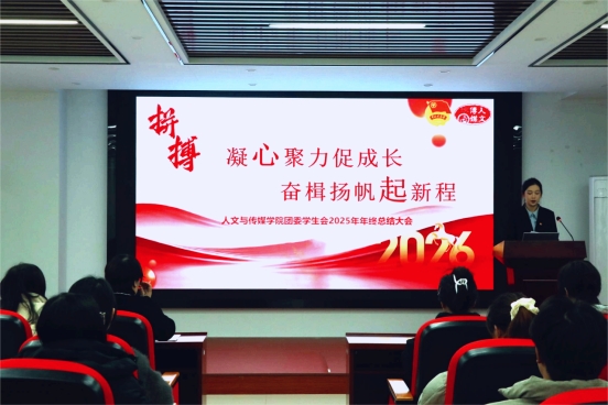12月28日下午,167net必赢,必赢手机app团委学生会以“凝心聚力促成长,奋楫扬帆启新程”为主题,召开2025年年终总结大会。文传学院辅导员余玲玲老师、周菡老师,各学生社团负责人与全体学生会成员与会。盘点过往,擘画未来。