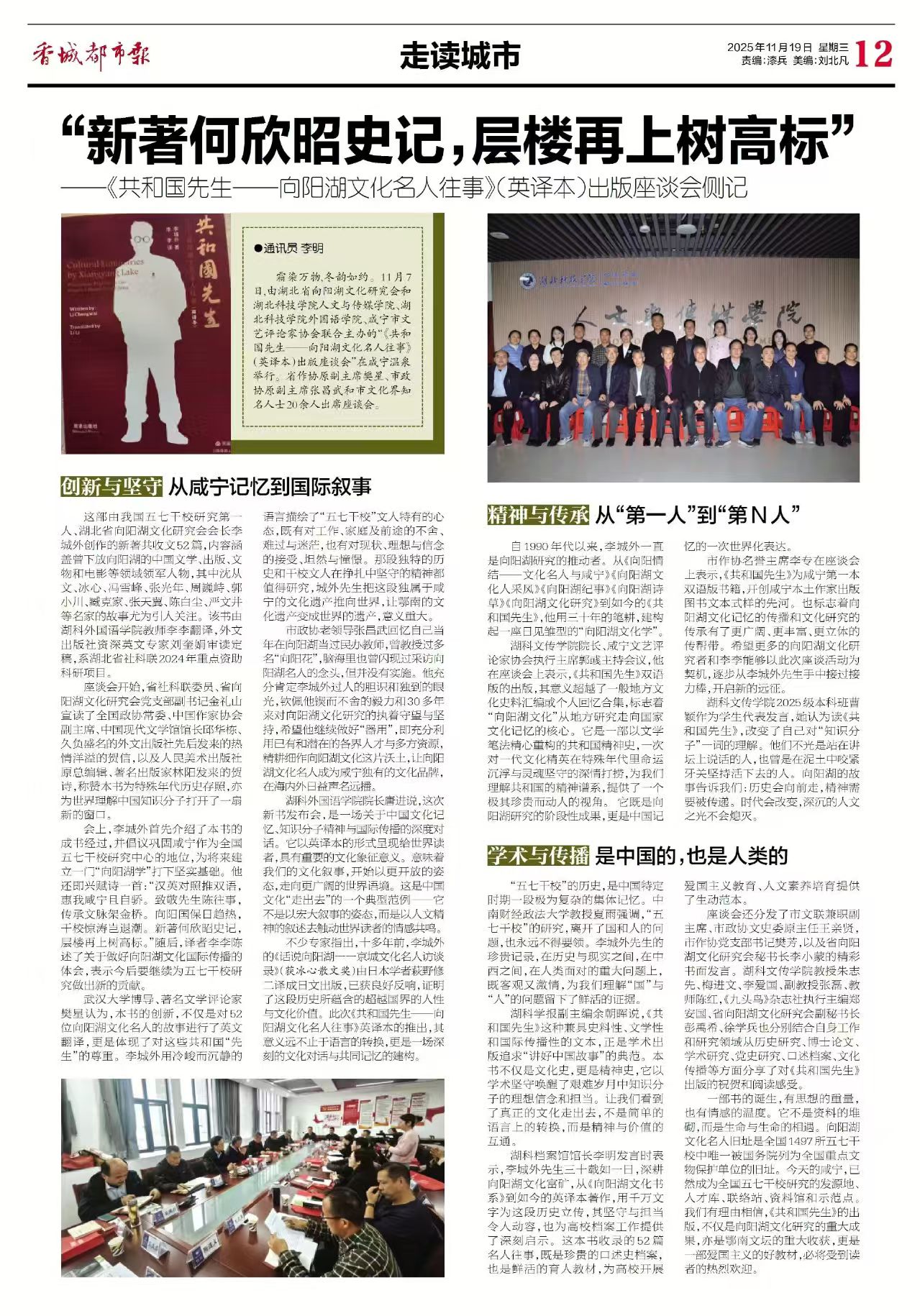 “新著何欣昭史记,层楼再上树高标”——《共和国先生向阳湖文化名人往事》英译本)出版座谈会侧记