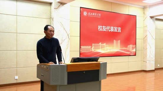 多位校友代表随后上台发言,分享了各自的成长故事与母校情怀。79级中文校友王胜弘、02级中文校友程文敏、92级历史专业校友雷岳奎、07级文秘专业校友赵爱等人,或从宏观视角阐述校友经济的时代价值,或深情回忆求学岁月与恩师教诲,或讲述扎根基层、教书育人的平凡坚守,或以地理虽近、情谊愈浓的身边人视角,娓娓道来对母校的持续关注与深厚情感。他们的发言情真意切,充分展现了文传学子在各行各业奋发有为的精神风貌和对母校的深深眷恋。